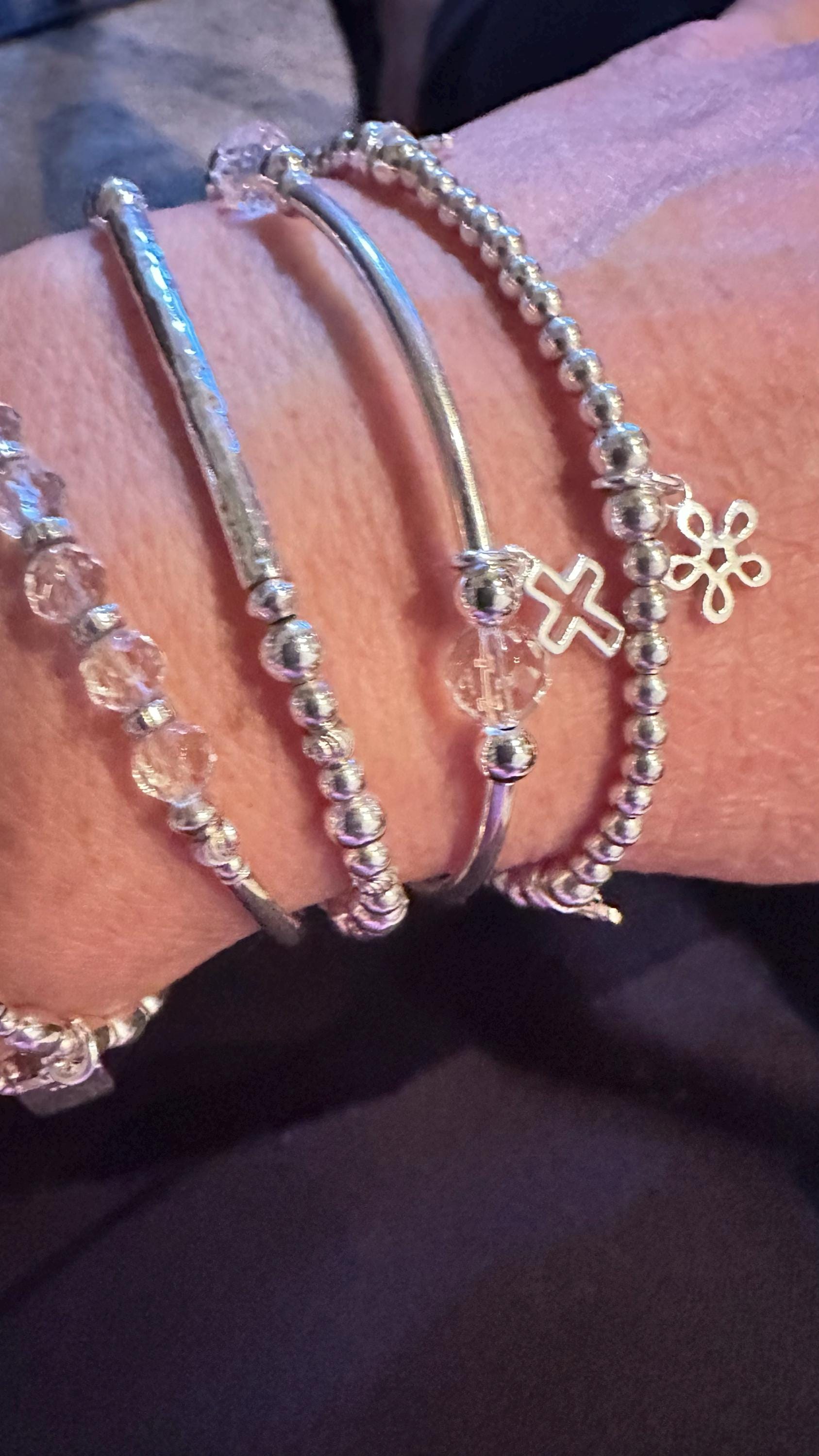 This bracelet is pretty! A collaboration with the shop owner and I think it turned out well! I wanted clear crystals in place of the silver beads. Appreciate the willingness to accommodate my request! Thank you! 🙏 😊